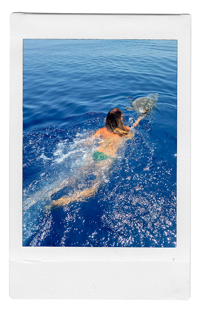 Beim täglichen Monitoring auf dem Meer erspähen wir zwei Schildkröten. Einer geht es gut, der anderen nicht. Woran man das erkennt? Eine schnappt natürlicherweise nach Luft und taucht ab, als wir näherkommen. Die andere stösst an unser Boot. Wir vermuten, dass sie Plastik gefressen hat, denn Kunststoff verursacht im Darm Auftrieb. Dadurch können Schildkröten Booten nicht ausweichen. Mit geübten Griffen holt Monica die Schildkröte an Bord. Wir taufen sie auf den Namen Lilo. Der Plan: Lilo in der Station ein paar Tage zu beobachten.